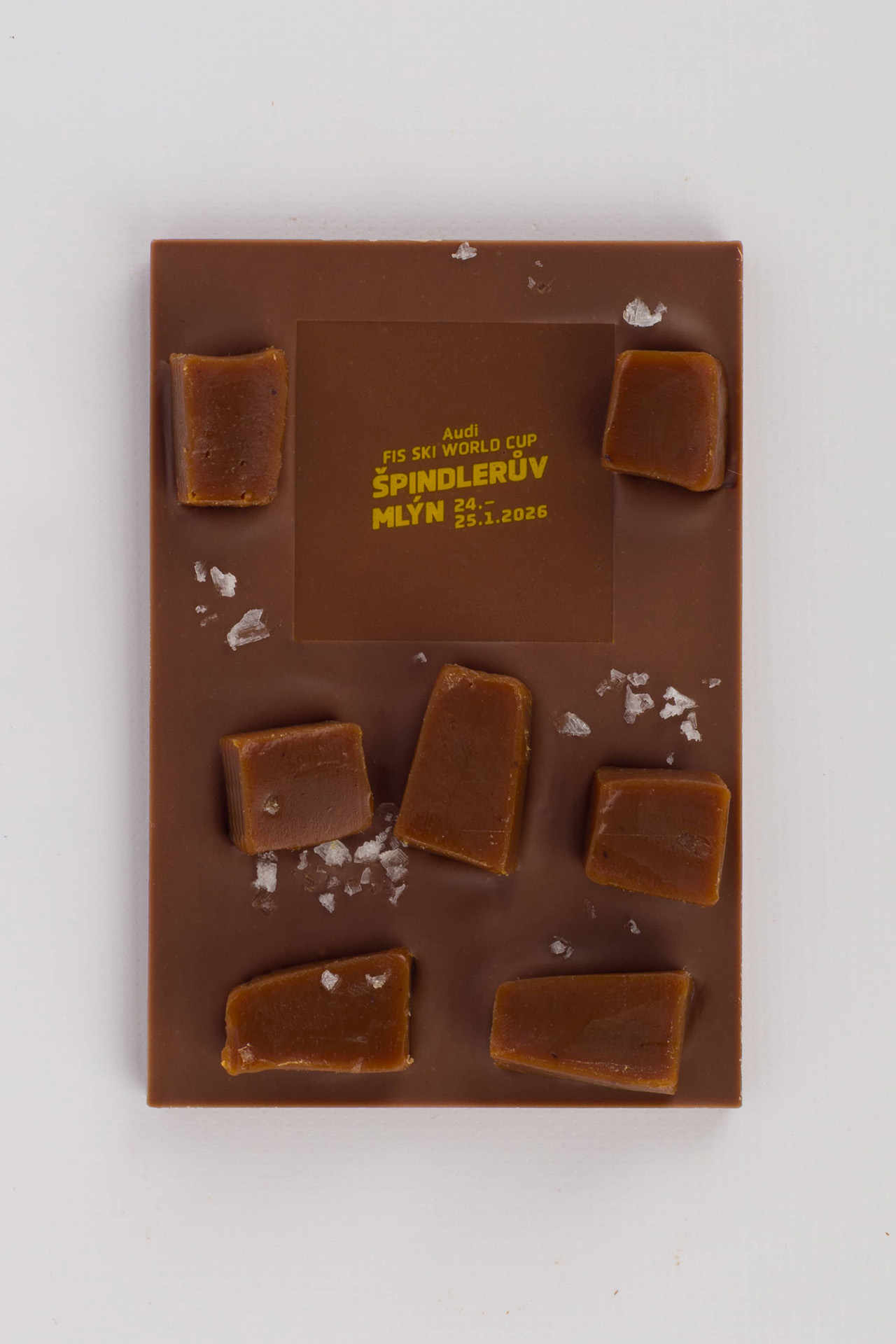 Caramel & Maldon Sea Salt (1 ks)Složení: kakaová hmota 43%, kakaové máslo, sušené mléko, cukr, smetana, máslo, glukóza, sorbitol, mořská sůl Maldon, jedlá soda, emulgátor sójový lecitin, aroma: přírodní vanilka Hmotnost: 40-45g Alergen: 6,7 Minimální trvanlivost: 6 měsíců