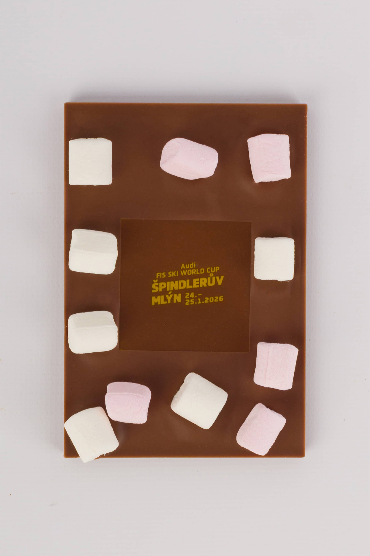 Marshmallow (1 ks)Složení: kakaová hmota 43%, kakaové máslo, sušené mléko, cukr, fruktóza, glukóza, vepřová želatina, kukuřičný škrob, emulgátor sójový lecitin, aroma: přírodní vanilka, barvivo E162-Betanin Alergen: 6,7 Hmotnost: 35g Minimální trvanlivost: 6 měsíců