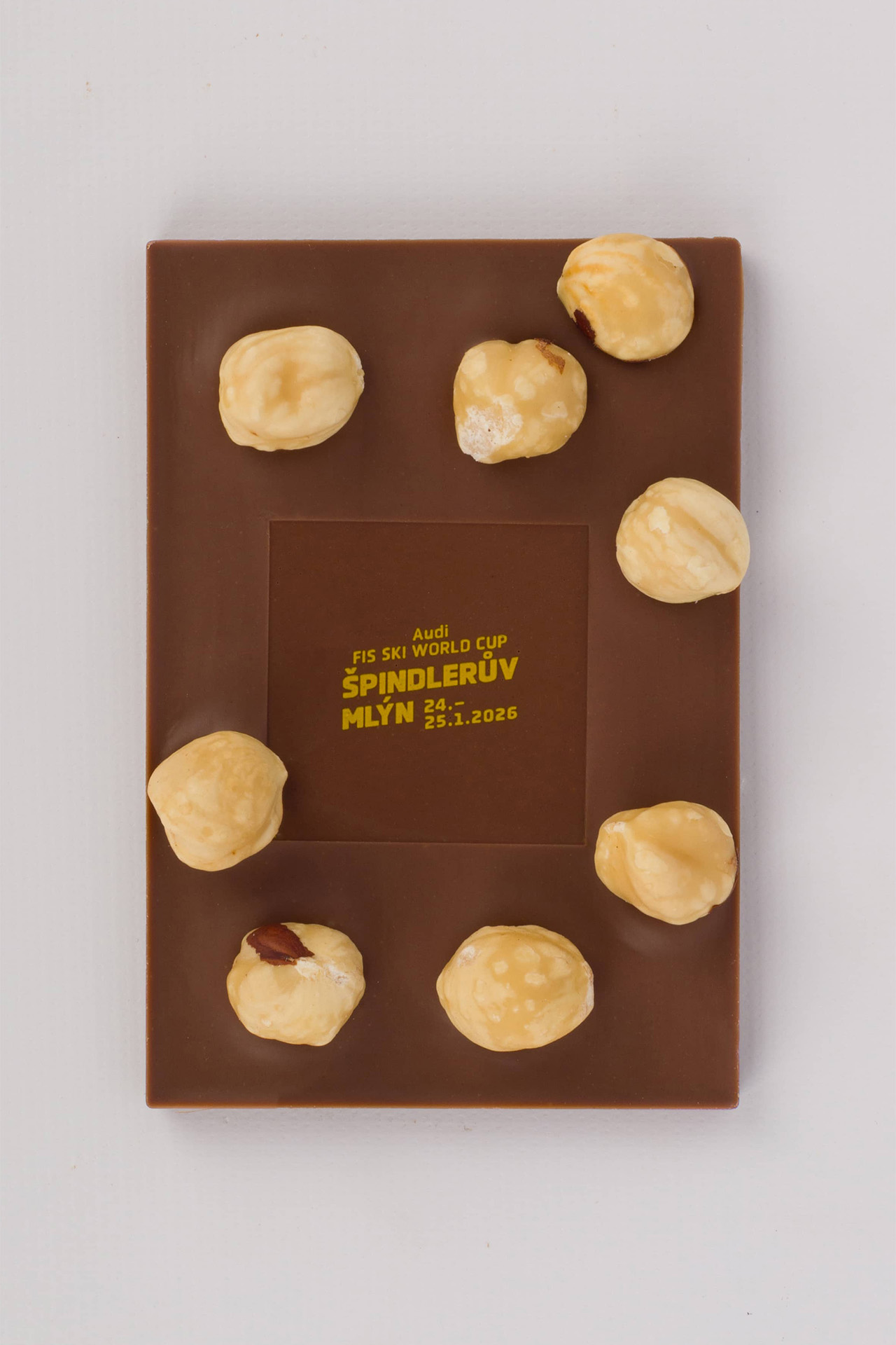 Hazelnut (1 ks)Složení: kakaová hmota 43%, kakaové máslo, sušené mléko, lískové ořechy, cukr, emulgátor sójový lecitin, aroma: přírodní vanilka Alergen: 6,7,8 Hmotnost: 35-40g Minimální trvanlivost: 6 měsíců