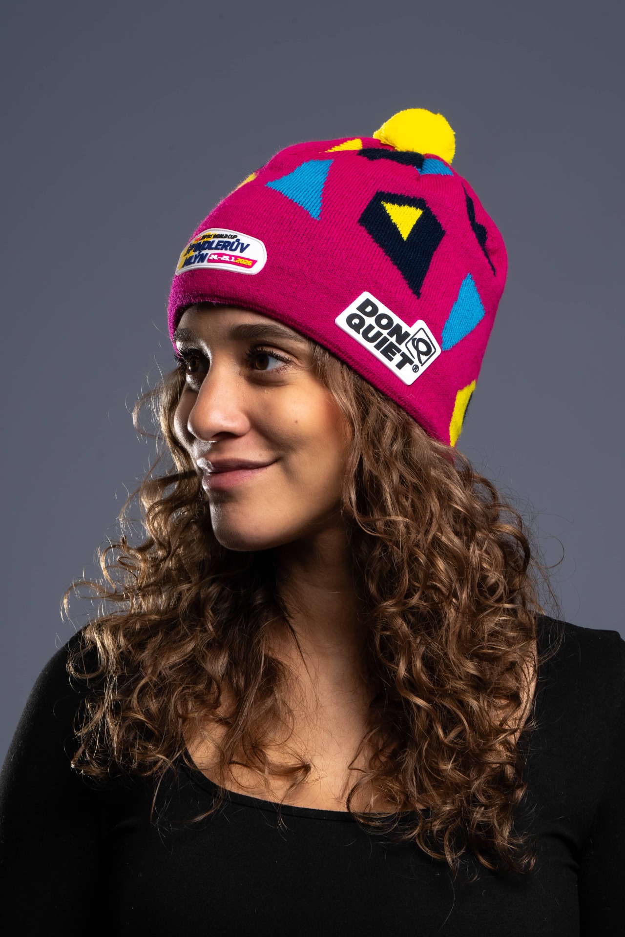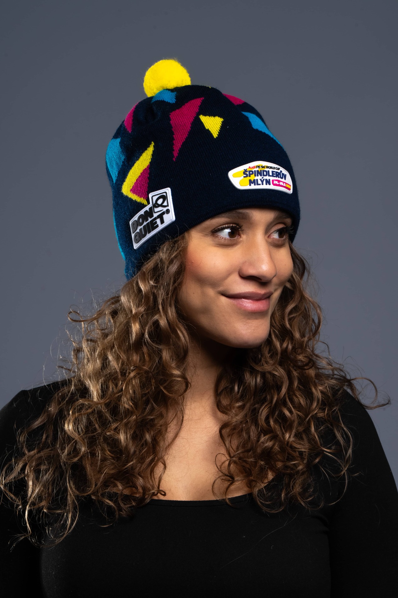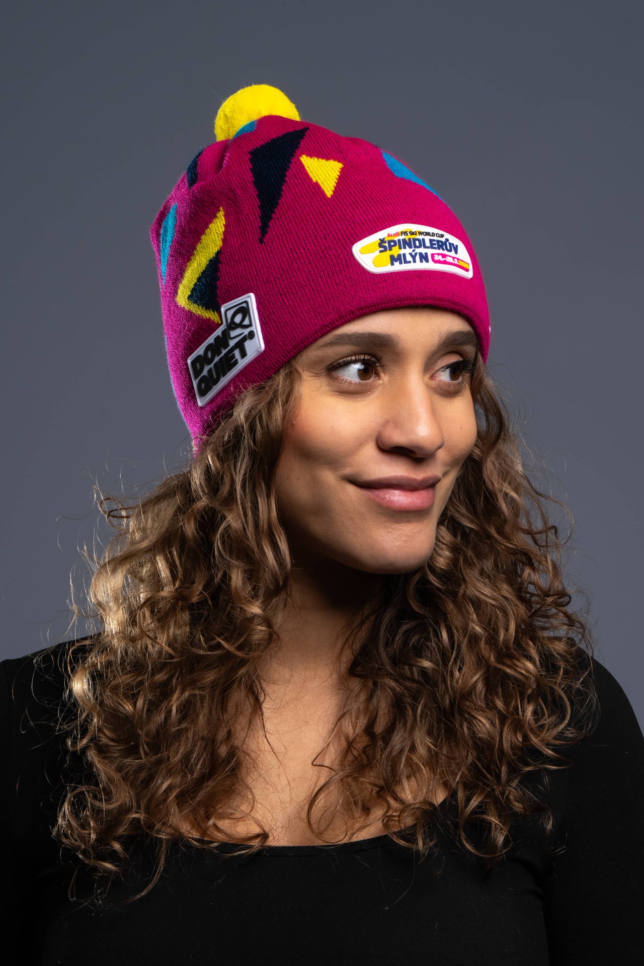 Pletená zimní čepice World Cup s bambulí